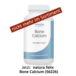 - WOSCHAWOSCHA Bone CalciumBestell-Nr. 56225 | 150 EMBO-CAPS®Nicht mehr lieferbar28,50 € * Ab 25,65 € *239,50 € / 1 kgInkl. 7% Steuern zzgl. VersandkostenNicht auf Lager