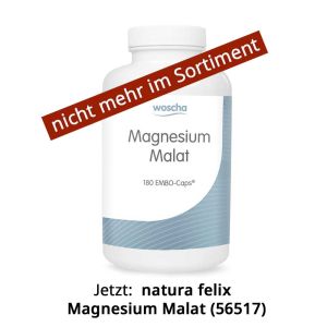 - WOSCHAWOSCHA Magnesium MalatBestell-Nr. 56516 | 180 EMBO-CAPS®Nicht mehr lieferbar41,00 € * Ab 36,90 € *288,73 € / 1 kgInkl. 7% Steuern zzgl. VersandkostenNicht auf Lager
