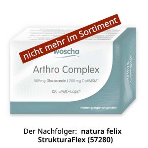 - WOSCHAWOSCHA Arthro ComplexBestell-Nr. 57270 | 120 EMBO-CAPS®Zurzeit nicht auf Lager43,90 € * Ab 39,51 € *378,45 € / 1 kgInkl. 7% Steuern zzgl. VersandkostenNicht auf Lager