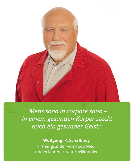 Um ein ganzheitlich orientiertes Unternehmen wie podo medi zu verstehen, wären harte Fakten und kalte Jahreszahlen sicherlich nicht der richtige Weg. Deshalb haben wir uns entschieden, Ihnen den Gründer der Firma, den Naturheilkundler Wolfgang P. Schallmey als Menschen mit all seiner Motivation, seiner Tatkraft und Willensstärke vorzustellen. Lesen Sie hier, wie es zur Gründung von podo medi kam und in welchem Geist das Unternehmen bis heute geführt wird: